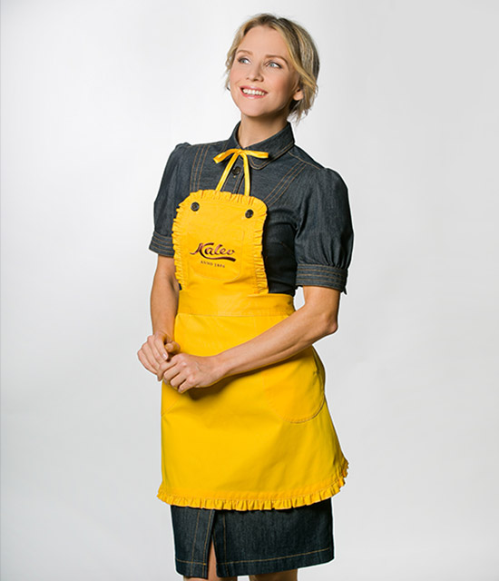 Magus šokolaadimaailm ning suurepärane klient, kes andis meile vabad käed. Mis saakski olla disainerile inspireerivam, kui ajaloohõngulised kauplused ning lapsepõlvest tuttavad suussulavad maiustused. Tulemuseks retrohõnguline kleit komplektis imearmsa kollase põllega.